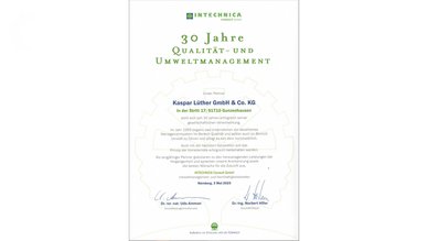 Von unserem langjährigen Partner - der Intechnica Consulting GmbH - wurden wir am 03. Mai für 30 Jahre Qualität- und Umweltmanagement ausgezeichnet. Im Jahr 1993 begannen wir, ein detailliertes Managementsystem im Bereich Qualität und später auch im Bereich Umwelt einzuführen und seitdem kontinuierlich zu pflegen. Dabei haben wir von Anfang an auf die Intechnica als Partner gesetzt.